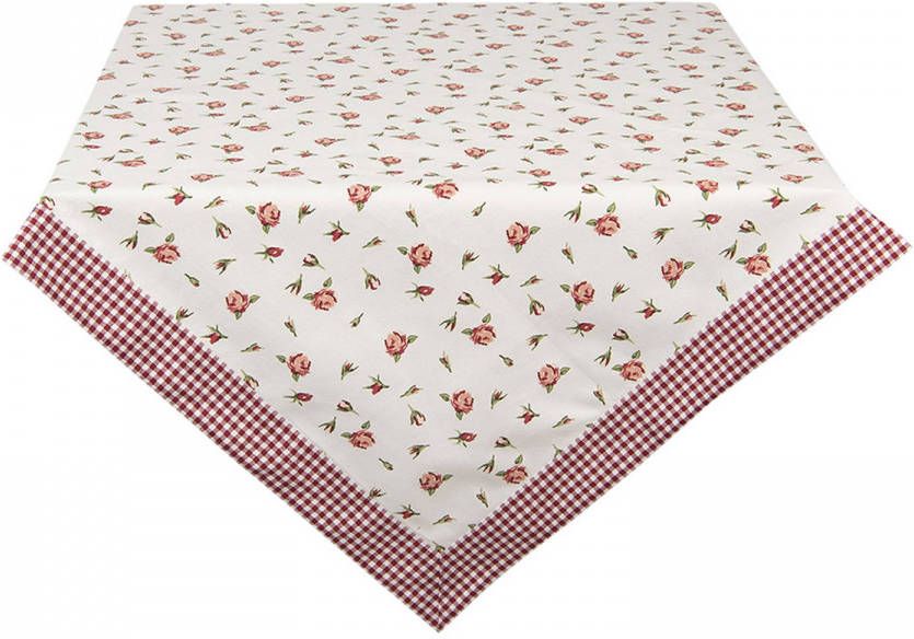 Clayre & Eef Vierkant Tafelkleed 100x100 Cm Rood Wit Katoen Vierkant Rozen Tafellaken Tafellinnen Tafeltextiel Wit